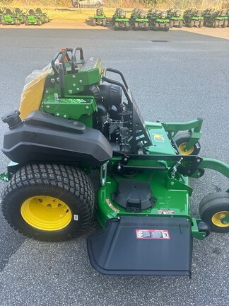 The 2025 John Deere 850R is a stand-on commercial mower featuring a 27 hp Kawasaki FX850V engine, a Tuff Torq TZT13 IHT transmission, and a 7Iron™ PRO deck 60-inch cutting width. It boasts a top speed of 12 mph and a 12-gallon fuel tank. A key feature of the "R" series is the integrated transaxles. Blade Tip Speed: 18,000 fpm Weight 1,155 lbs. Warranty 36 months or 1,500 hours, with the first 24 months having no hour limitation Call or Text Chris @ (770)545-1468