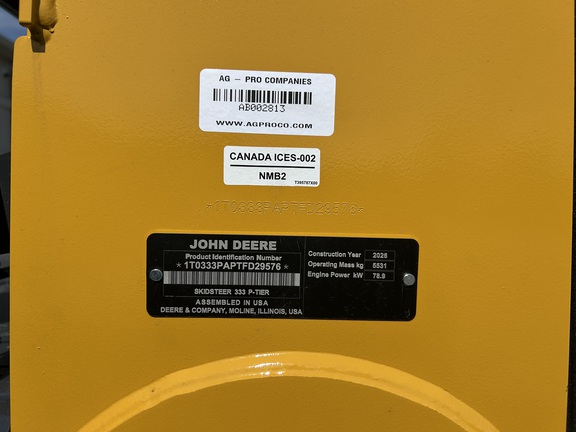 NEW 2025 JOHN DEERE 335P FULL FRAME TRACK LOADER WITH A YANMAR 108HP 4 CYLINDER, INTERCOOLED, TURBOCHARGED DIESEL ENGINE. HI FLOW MACHINE AND WIDE TRACKS. SUROUND VIEW, FULL ROOMY CAB WITH HEAT AND A/C. THIS IS A MUST SEE MACHINE WITH FAR TOO MUCH TO MENTION. FULL FACTORY WARRANTY 2YRS/2000HRS WHICHEVER COMES FIRST. RESIDENCY RESTRICTIONS DO APPLY. *FINANCING AVAILABLE, WE TAKE TRADES, SHIPPING AVAILABLE* **AG PRO IS YOUR PREMIER EQUIPMENT DEALER IN THE MID WEST,