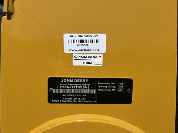 NEW 2025 JOHN DEERE 334P FULL FRAME SKID STEER LOADER WITH A YANMAR 118HP 4 CYLINDER, INTERCOOLED, TURBOCHARGED DIESEL ENGINE. HI FLOW MACHINE AND WIDE TRACKS. REAR VIEW CAMERA, FULL ROOMY CAB WITH HEAT AND A/C. THIS IS A MUST SEE MACHINE WITH FAR TOO MUCH TO MENTION. THE GRAPPLE IN THE PHOTO IS ADDITTIONAL. MANY BUCKET/ATTACHMENTS ARE AVAILABLE. FULL FACTORY WARRANTY 2YRS/2000HRS WHICHEVER COMES FIRST. RESIDENCY RESTRICTIONS DO APPLY. *FINANCING AVAILABLE, WE TAKE TRADES, SHIPPING AVAILABLE* **AG PRO IS YOUR PREMIER EQUIPMENT DEALER IN THE MID WEST,