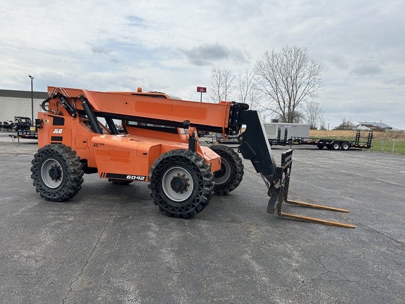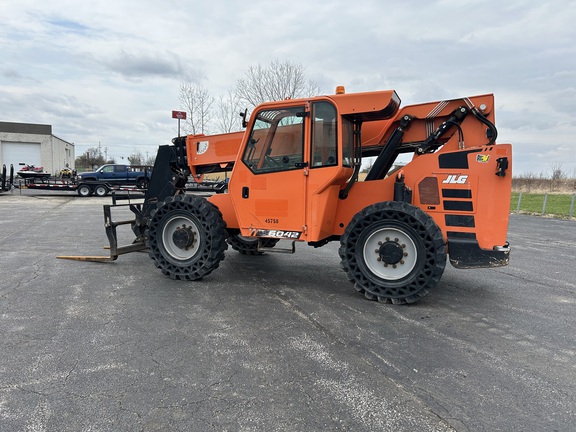 Good running telehandler! Cab w/ AC, 48" forks, solid flex tires, 6,000lb capacity, 42' reach. Fresh service! Shipping and financing available. Please call or email for more information.