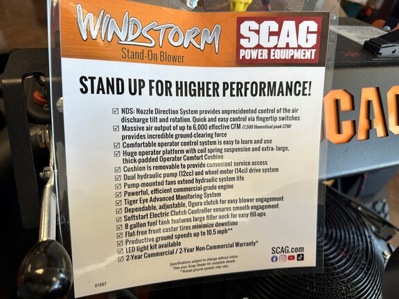 Scag Windstorm Stand-On Blower Vanguard 37HP engine 10.5 MPH max ground speed 8 gal capacity fuel tank *Price does not include shipping or taxes *Call for availability Call/Text Brrantley at (912)548-3313