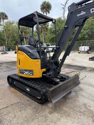 **2020 John Deere 26G 3142hrs - $21,900 Located at South Daytona store** π Hours: 3142 π Engine: Yanmar 3TNV80F 1.267 L 3-cylinder diesel, 20 hp net π Operating Weight: 5,780 lbs π Max Digging Depth: 8 ft 6 in π Max Digging Reach: 15 ft 2 in π Bucket Digging Force: 4,994 lbs π Arm Digging Force: 3,410 lbs Pins in boom and sprockets recently replaced. Delivery is not included in price. Sold as is. Financing and shipping available.