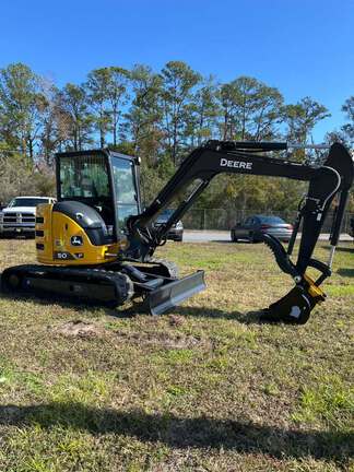 John Deere 50P excavator with ac cab, fixed blade, and long arm. Includes bucket and hydraulic thumb. Nationwide shipping available. Ask me about 0% interest financing. Contact Stephen at Ag-Pro Middleburg 352*824*3401