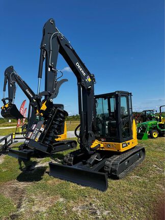 2024 John Deere 60 P-Tier A/C Cab Excavator w/ Thumb & ME36 Mulcher IN STOCK @ Ag-Pro Live Oak • Call or text Hunter anytime at 229*251*8994 thank you! Package includes: 36” tooth bucket, hydraulic thumb, front window guard, and front screen. Advertised price is CASH ONLY. Payments as low as $2,318.01 for 72 months at 6.6% interest with $0 down payment and including insurance! 36” mulching head cutting width 850 lb mulching head weight 13,700 lbs (6 metric ton) 53 Hp Yanmar EPA Final Tier 4/EU Stage IV diesel engine Open center pilot-operated controls Closed center load sensing hydraulics with 1 variable-displacement hydraulic pump 16” wide rubber tracks 13” ground clearance 20’ 4” max cutting height 14’ 6” max dumping height 13’ 6” max digging depth 21’ 6” digging reach New & Used Tractors any size, Compact construction equipment, lawn & garden equipment and utility vehicles IN STOCK! Call or text Hunter anytime at 229*251*8994. Located at Ag-Pro (Live Oak, FL). 84 locations across USA. John Deere Great Plains Billy Goat Grasshopper Bush Hog Big Tex Stihl Rhino Honda Morbark/Rayco/Boxer/Denis Cimaf by Alamo