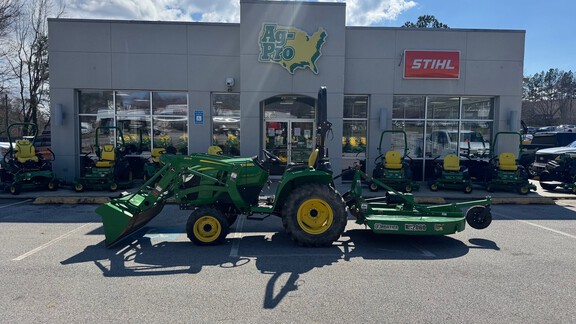 Used 2022 John Deere 3038E with Loader, comes with a cutter (RC2060) and box blade (BB5060L), only 300 hours.