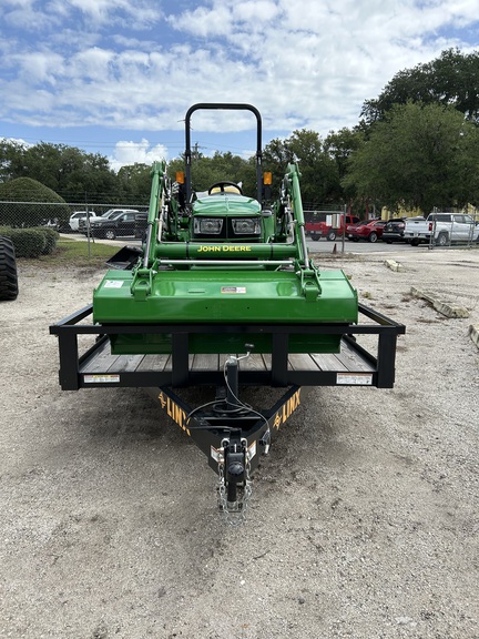 JOHN DEERE 3025E TRACTOR W/300E LOADER, FRONTIER RC2060 5' CUTTER, & LINX EQ07018 18' TRAILER W/GATE AND BUILT IN KNEE RAMPS. CALL 904-692-1538
