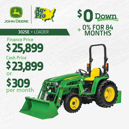 Specs π 24.7 HP Yanmar diesel engine π Hydrostatic transmission with Twin Touch pedals π Standard 4WD for maximum traction π 300E loader for versatile loading π Loader lift capacity: 1,356 lbs to full height π PTO power: 17.4 HP π Full John Deere warranty: 2 years/2,000 hours (whichever comes first)