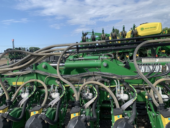 Rows: 54Row Spacing: 20 in Frame: Wing Fold Metering System: Exact Emerge Hopper: Central Fill System Row Command: Yes Electric Drive. One owner machine with tracks and fertilizer