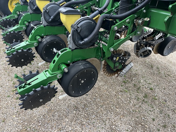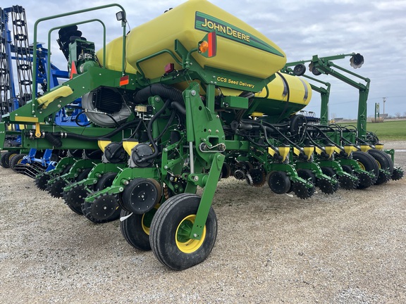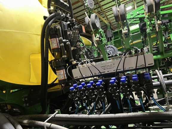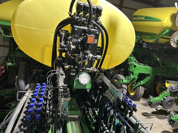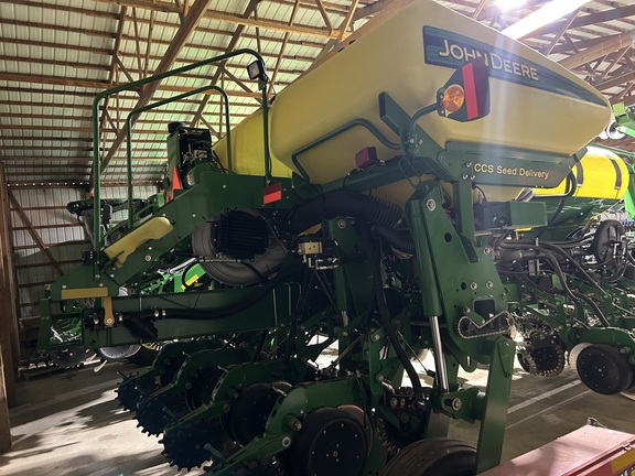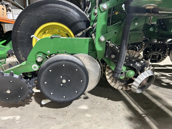 16 row, ccs, vrd, row command, active downforce, seedstar xp, markers, row cleaners with pnumatic adjust from cab, surefire fert system- 500 tank, totally tubular placement, electric pump with deere rate controller and 5 sections. wear- meters are E-Sets and getting ran on meterstands currently, parallel arms are 65%, closing wheel bushings are 80%, gauge wheel arms are 40%, seed openers are 45%. Planter needs nothing