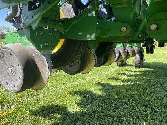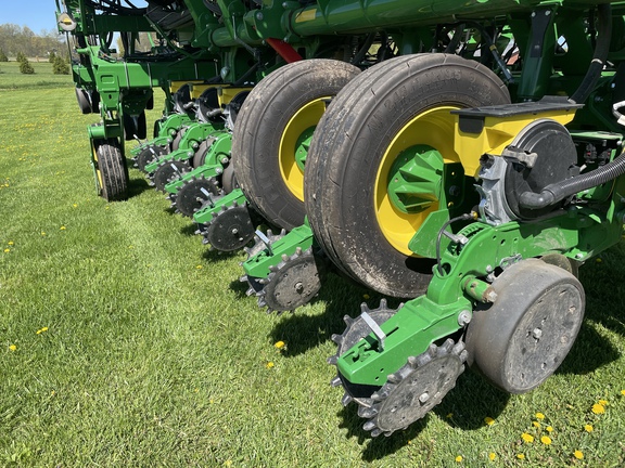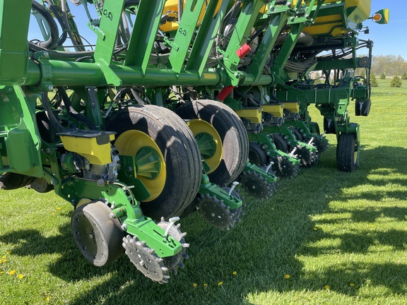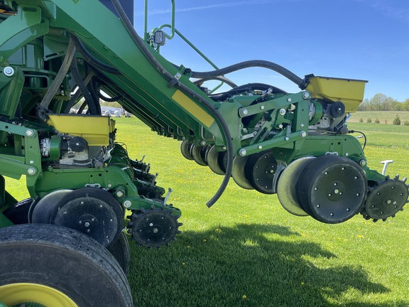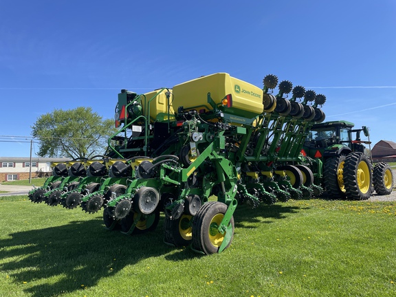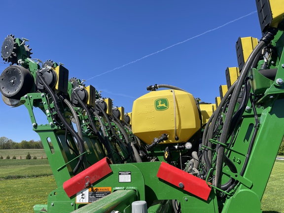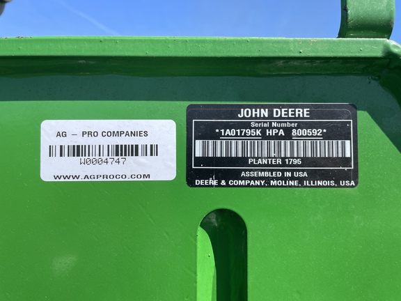 ME5E PACKAGE LIQ FERT LESS OPENERS ELEC DRIVE MAXEMERGE 5E MTR STEEL SCRAPERS ACTIVE PNEUMATIC DOWN FORCE YETTER TWISTER POLY SPIKE CW SEEDSTAR 4HP ME5E EZFOLD REGULAR SEED TUBE/ACCUCOUNT LESS ROW TILLAGE LESS MARKERS REGULAR PARALLEL ARMS LIQUID FERT TANK/MOUNTING BR PREMIUM LIGHTING ROCK GUARDS **2023 John Deere 1795 planter ME5e 16/32, factory in furrow fertilizer to every row, two point hitch, active pdf, no markers, factory getter twister closing wheels, pro max 40 corn plates and pro max 64 soybean plates, premium lighting , 914 acres of use**