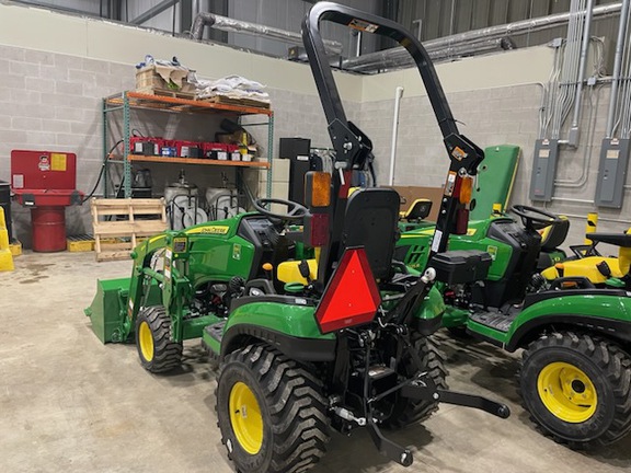 🚜 Year: 2025 🚜 Model: John Deere 1025R 🚜 Attachments: Loader and Quick-Attach (Q/A) Bucket Description: Looking for a reliable and powerful compact tractor? This 2025 John Deere 1025R Sub Compact tractoris ready to tackle any job you throw at it. Equipped with a versatile loader and a quick-attach bucket, this machine is perfect for landscaping, gardening, and small-scale farming. Features: Engine: 24.2 HP diesel engine Transmission: Hydrostatic transmission with TwinTouch™ pedals Loader: John Deere 120R Loader with quick-attach system Bucket: 53-inch quick-attach bucket Don't miss out on this fantastic deal! Whether you're a homeowner or a small-scale farmer, the John Deere 1025R is the perfect addition to your equipment lineup.