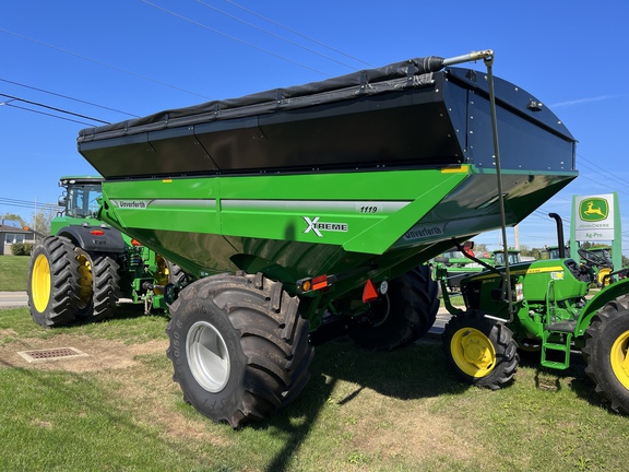 Take your harvest to the extreme with the all-new 19-Series X-TREME grain cart from Unverferth. Featuring an exclusive front-folding, single corner-auger with a forward reaching design, the 19-Series lineup of grain carts positions the downspout ahead of the hitch for an enhanced line of sight from the tractor cab. The upper auger folds diagonally across the front of the grain cart, permitting a longer upper auger which increases side reach and height. The all-new four-way downspout features an increased range of motion for added operator convenience. Available in 1550, 1330, 1100 and 1000 bushel carrying capacities with unloading speeds up to 650 bushels per minute! The Unverferth 19-Series X-TREME grain cart features an innovative design that increases operator comfort, improves unloading accuracy and will make your harvest more efficient. The 19-Series X-TREME grain carts can truly take your harvest to the extreme.