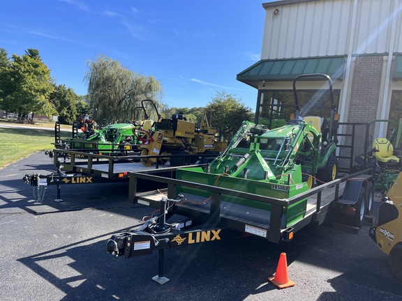 18' Trailer with rear ramp. 7K pound capacity, tandem axles, wood deck.