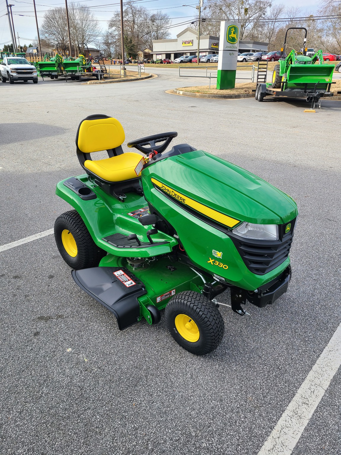 New John Deere X330 Call Mike 6787250394 -22 HP Briggs Engine -42 In Cut (48 In Cut available) -Twin Touch Pedals -Easy to operate controls -18 In Turning radius -4 Year 300 Hr Warranty Call Mike 6787250394 Financing available