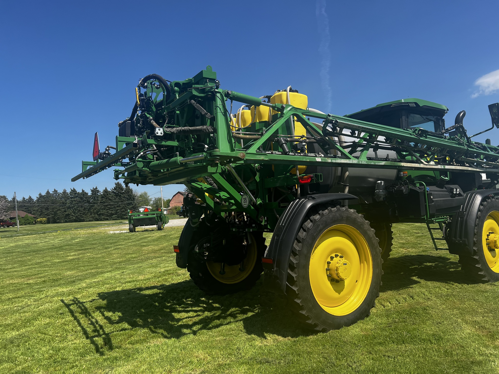 2023 JOHN DEERE 410R SPRAYER, ULTIMATE VISIBILITY PKG, ULTIMATE COMFORT PKG, 100FT BOOM 15", (4) 50 GALLON D.I TANKS W/HIGH VOL PUMPS, (1) 35 GAL DI LOW RATE TANK W/PUMP, 1000 GAL SS TANK, VF380/90R46 ALLIANCE TIRES 80%, HIGH FLOW SOLUTION PUMP,SS EDUCTIOR WITH AUTO SOLUTION CONTROL, BOOM TRAC, FENCE ROW NOZZLES, AIR BAG GUARDS, UNDERFRAME SHEILDS, LESS FRONT FILL, LESS BOOM AIR PURGE. 836 HOURS